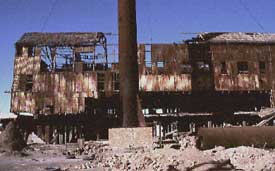 Präsident Salvador Allende (1970-1973) verstaatlichte Landwirtschaft und Industrie, was erneut zu einer tiefen Wirtschaftskrise führte und folglich zu einem Militärputsch durch Pinochet. In der Zeit der Diktatur wurden die verlassenen Salpeterminen in Konzentrationslager für politische Häftlinge umgewandelt. Heute wirken die Ruinen der Salpeter-oficinas in der Wüstenlandschaft wie Filmkulissen einer verwitterten Westernstadt. |